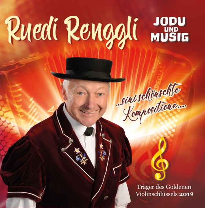 Der erfolgreiche Jodler, Musikant, Dirigent und Komponist Ruedi Renggli aus Finsterwald im Entlebuch darf im Herbst 2019 die Auszeichnung «Goldener Violinschlüssel» entgegennehmen (rechts im Bild mit Präsident Walter Näf vom Verein Goldener Violinschlüssel). Zum Anlass dieser grossen Ehre ist ein neuer Tonträger erschienen, welcher das musikalische Schaffen des kreativen Entlebuchers in vielfältiger Art und Weise dokumentiert. «Jodu und Musig» beinhaltet insgesamt 24 Titel, die von Ruedi Renggli und anderen Interpreten dargeboten werden.